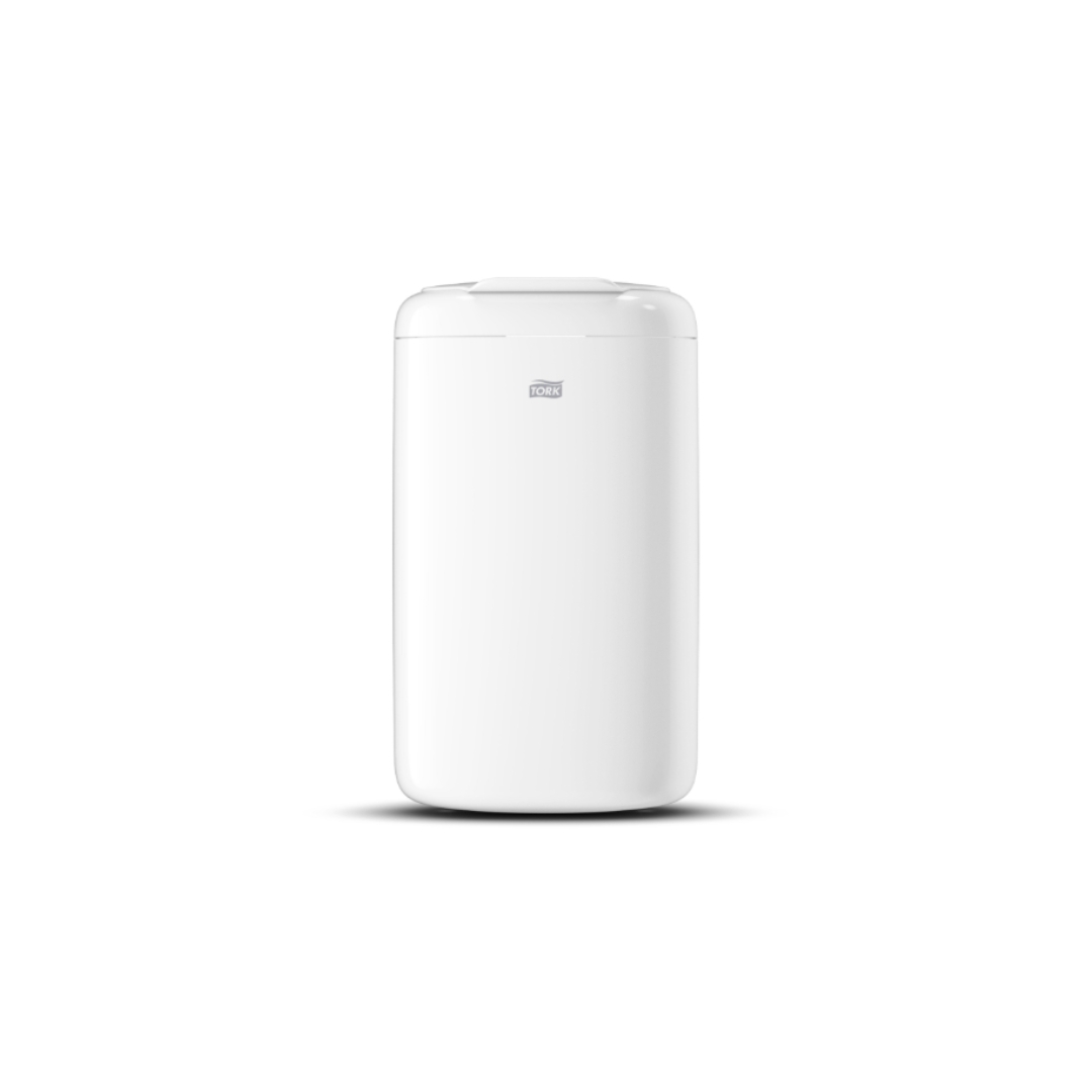 The Tork 5L bin in Elevation Design can be used for traditional waste in small washrooms or for sanitary disposal inside the stall.